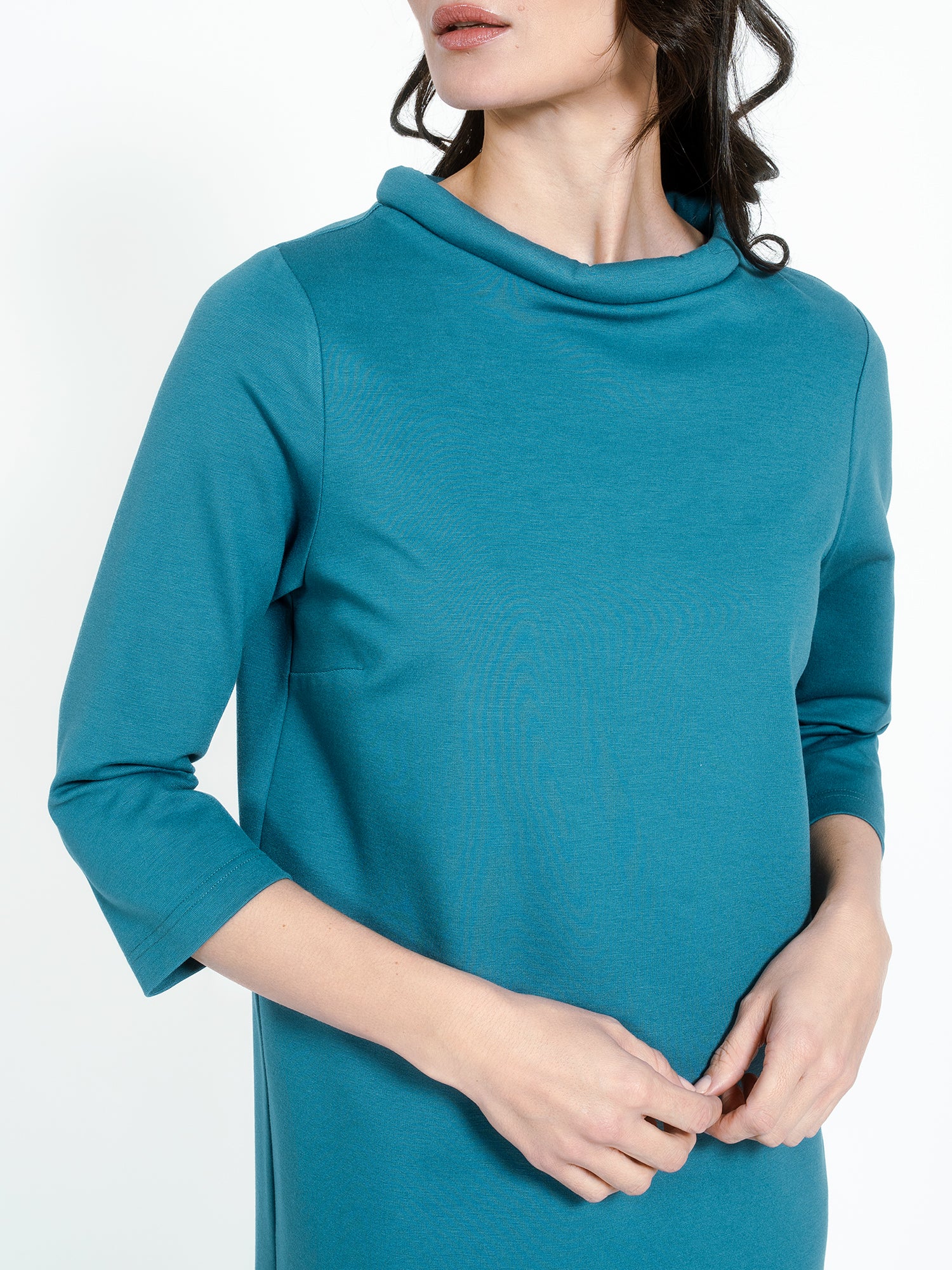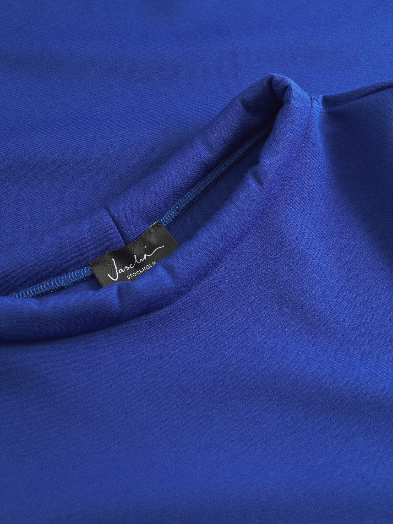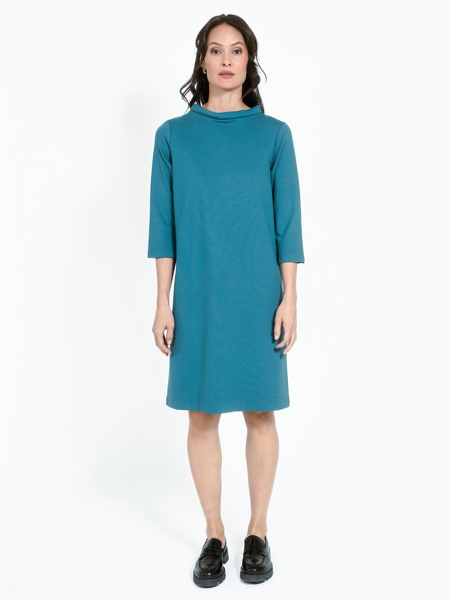 Dress in slightly heavier and stretchy quality from Jascha Stockholm. Knee-length model with light padded collar and three- quarter length sleeve.